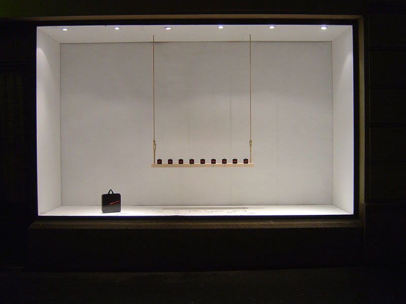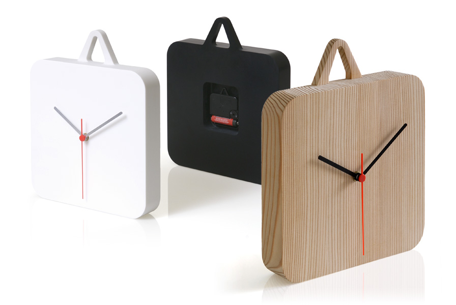 AUDE GENTON DESIGN PROJECTS EYELET Big Clock Inspired by the shape of a clock mechanism, this clock can stand or be hung on a wall. Created for the installation Forever Now, at LaPlacette, Lausanne, www.laplacette.ch materials: pine wood, black or white Corian, aluminium hands size: 220 x 270 x 36 mm |