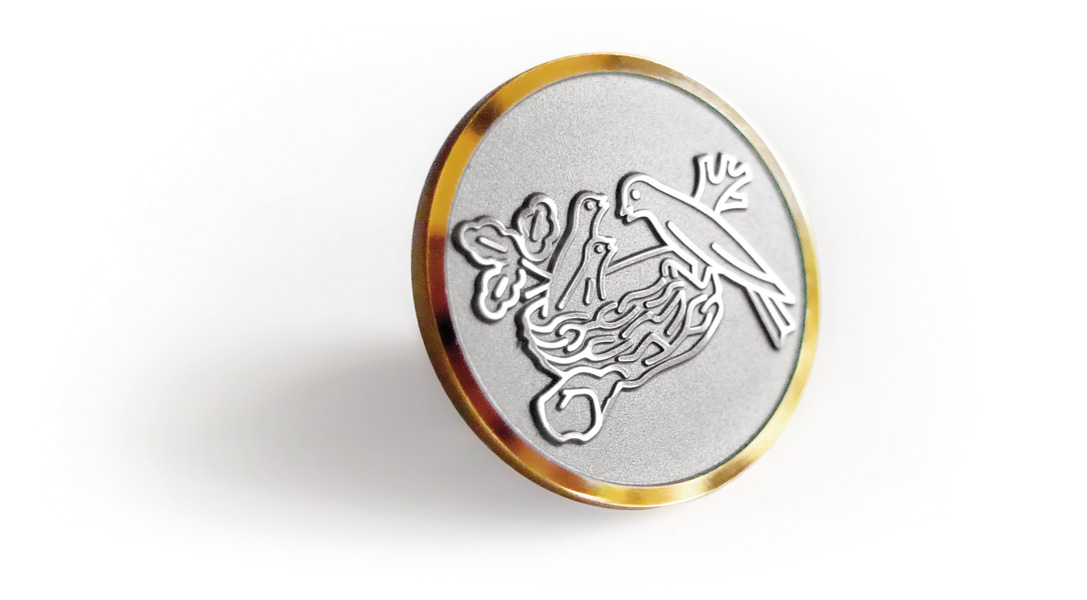 The Nestlé ten years of service award is a gold pin embossed with the company logo.
